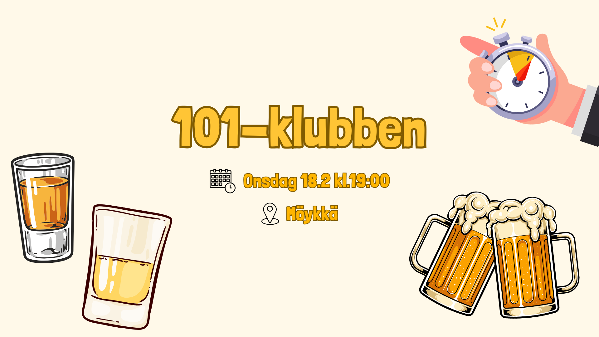 Klubben för nationens törstigaste medlemmar har årets första intagning av nya medlemmar nu på årsfestveckans onsdag 18.2. De som klarar av bragden får, förutom ära och berömmelse, ett officiellt 101-klubbshalarmärke samt livstids klubbmedlemskap. Nuvarande medlemmmar är alltid välkomna på evenemanget. Vid frågor kan man kontakta Otto Sundell: +358 44 2032377