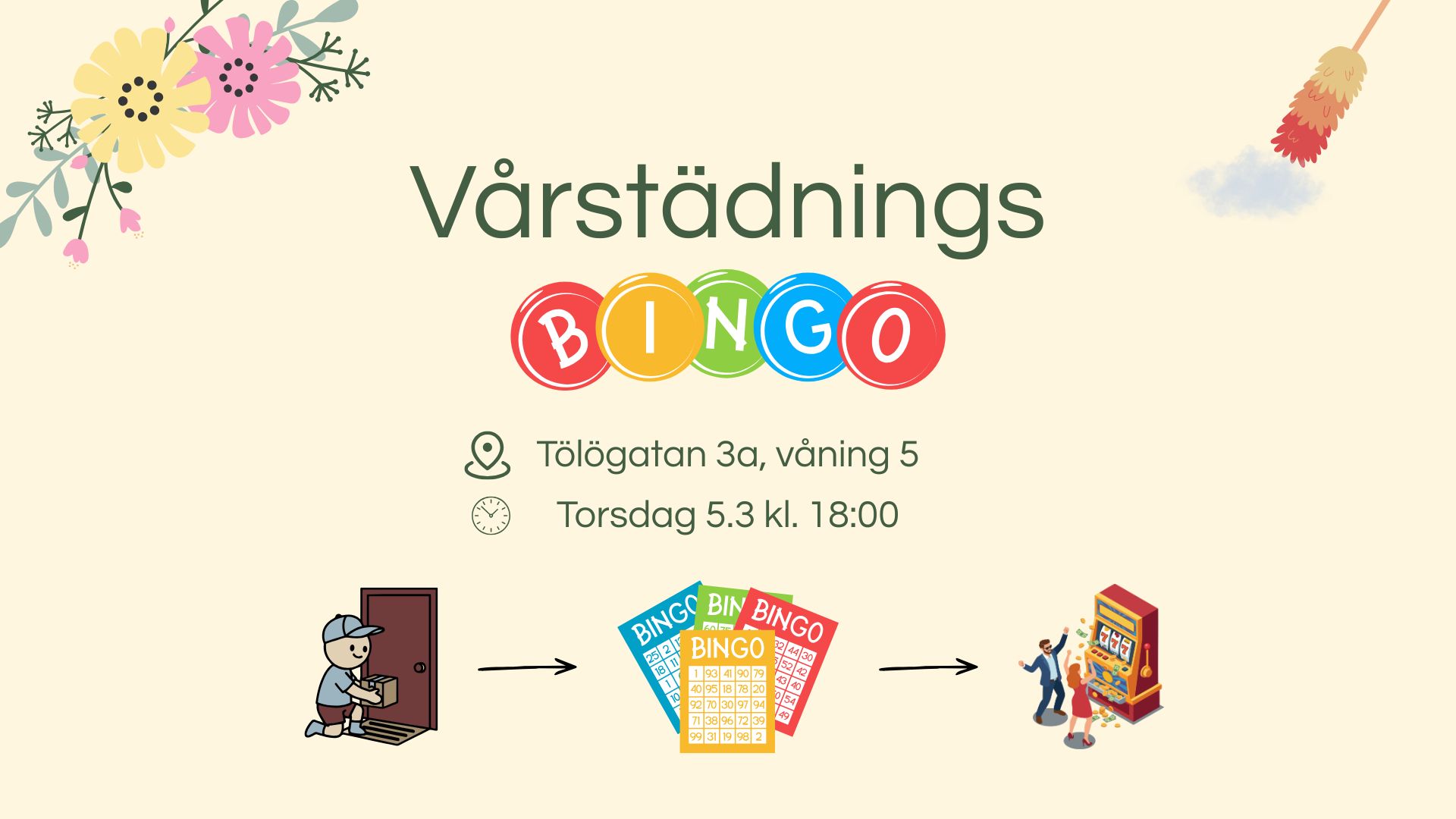 Kom då på vårstädningsbingo torsdag 5.3 kl. 18:00 i teatern!✨